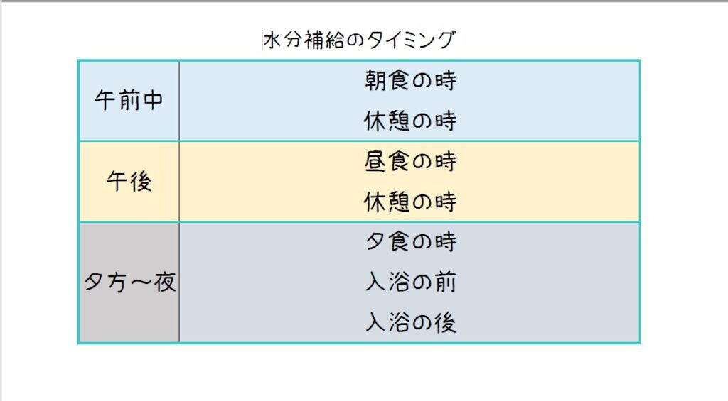 こまめな水分補給を心がけて
