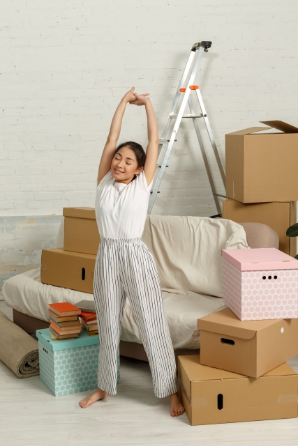 息を吐きながら伸びをして、凝り固まった背中をストレッチしましょう。